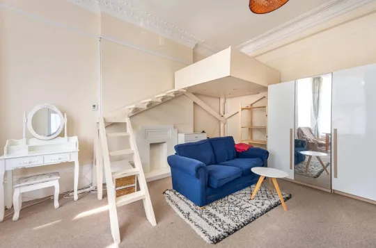 حالا، شما میتوانید یک استودیوفلت در قلب این محله محبوب لندن را اجاره کنید، اما با یک مشکل کوچک! این مشکل در مورد مبلغ اجاره ماهانه 1800 پوند یا شرایط اجاره کوتاه مدت نیست، حتی درباره حمام مشترک با همسایگان، که با توجه به مبلغ اجاره، عجیب به نظر میرسد هم نیست. این مشکل کوچک در مورد محل قرار گرفتن تخت خواب هست، به محض ورود به این واحد یک نردبان عجیب می بینید که به یک تخت خواب مربع شکل منتهی میشود و به نظر میآید که تخت بالای مبل شناور است.