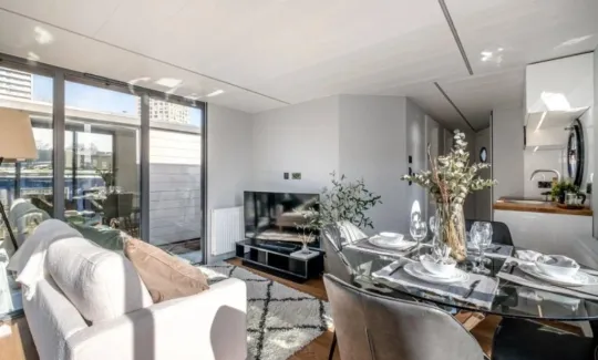 هذه المنازل المكونة من غرفتي نوم للبيع هي جزء من مجموعة عقارات تسمى Water Lodge، وتقع في بوبلار مارينا، على بعد مساالجزء الداخلي لهذا المبنى صغير بعض الشيء ولكنه حديث ويبدو أنه تم بناؤه على مستوى عالٍ. كما أنها تتمتع بإطلالة مريحة على النهر، وتعد التراسات الأمامية والخلفية، التي تتطلب طاولة والعديد من الكراسي الجيدة، المكان المثالي للاسترخاء والاستمتاع مع الأصدقاء. ولكن هناك مشكلة واحدة، لأن هذه الأكواخ المائية هي في الواقع قوارب منزلية، ولا يمكنك الحصول على قرض لشرائها؛ لذلك، يتعامل وكلاء العقارات مع المشترين نقدًا فقط. يجب أن يكون لديك بالفعل 215000 جنيه إسترليني متاحة وجاهزة.