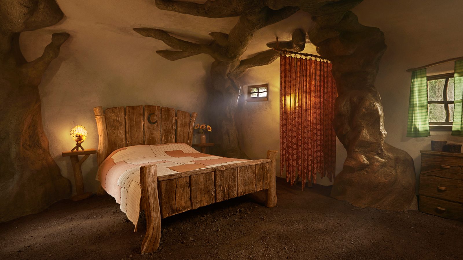 تم ذكر غرفة Shrek الخارجية الشهيرة أيضًا في قائمة الممتلكات، ويذكر الإعلان أيضًا أن أفضل صديق لـ Shrek، Donkey، المعروف باسم Guardian of the Swamp، قد قام بإعداد سجادة ترحيب للضيوف.