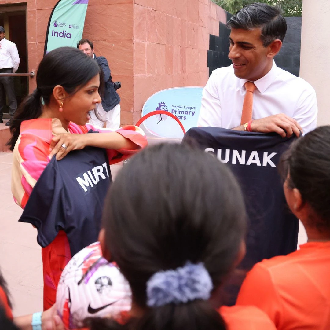بدأت الرحلة بصورة جميلة للسيدة مورثي وهي تقوم بتعديل ربطة عنق السيد سوناك أثناء نزوله. أصبحت هذه اللحظة الحميمة، التي تمت مشاركتها على حساب رئيس الوزراء على إنستغرام، الصورة الأيقونية لرحلة الزوجين إلى الهند.